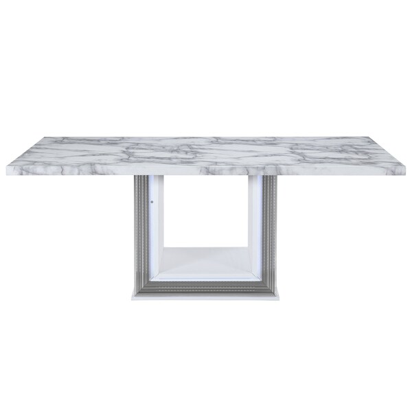 Modern High Gloss Ylime White Marble Dining Table (Discontinued)