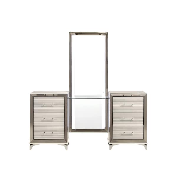 The Zambrano White Collection exudes sophistication and modern charm. Its sleek design, pristine white finish, and polished chrome accents create a luxurious, inviting atmosphere. The spacious storage and built-in LED lights add functionality, making it a perfect blend of style and practicality. A stunning addition to any contemporary bedroom, the Zambrano is a must-have for those seeking both elegance and comfort.