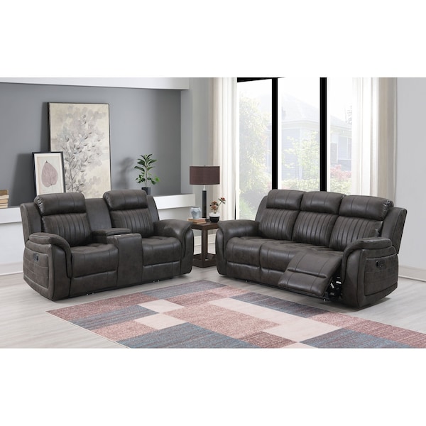 Enhance your living room with the U8517 collection by Global Furniture USA. An elegant living room set finished in easy-to-care charcoal fabric, and generously stuffed for additional comfort this set is designed for maximum relaxation. The reclining feature provides unmatched comfort and support, while the set is expertly crafted with high-quality materials to ensure durability and longevity. Providing you with ultimate relaxation after a long day, this stylish and functional set is a great way to update your living space.