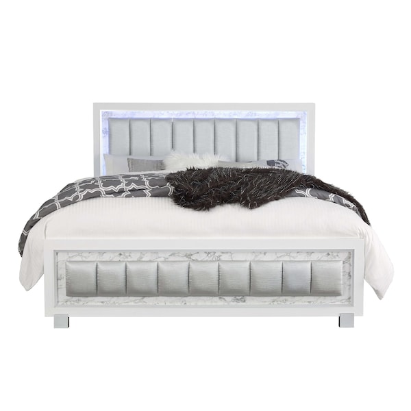 Transitional Glam Marble, Metallic Santorini White Full Bed