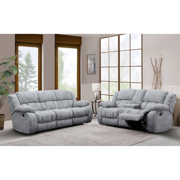 Transitional Zaftig Fabric U250 Grey Reclining Sofa/Console Reclining Loveseat