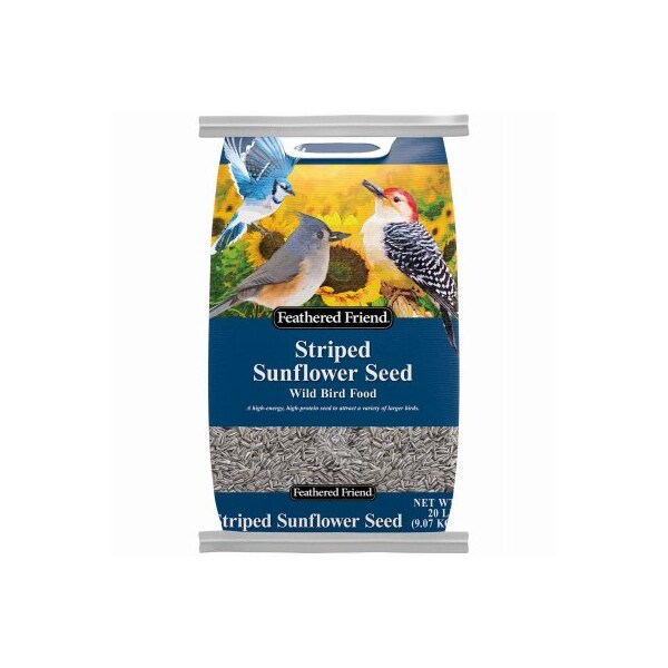 Feathered Friend 20lb Striped Sunflower Wild Bird Food Striped Sunflower Wild Bird Food is great for larger birds like Jays and Cardinals