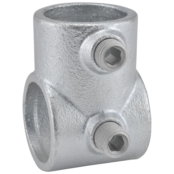 Single Socket Tee is made from galvanized iron for corrosion resistance and long lasting strength. Single Socket Tee Pipe Fitting is used to join two pipes together at a 90 degree angle when building pipe hand railing, guard rail or other pipe-based structures. Fittings lock onto pipe with hardened set screws included for secure connection.