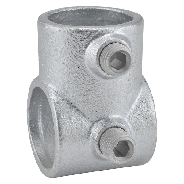 Single Socket Tee is made from galvanized iron for corrosion resistance and long lasting strength. Single Socket Tee Pipe Fitting is used to join two pipes together at a 90 degree angle when building pipe hand railing, guard rail or other pipe-based structures. Fittings lock onto pipe with hardened set screws included for secure connection.