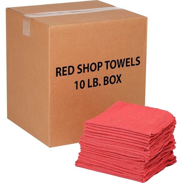 10 Lb.Box 100% Cotton Shop Towels, Red