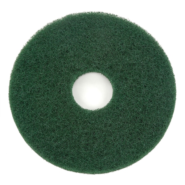- Pad is made using 100% recycled polyester fiber with 80% post consumer waste. Utilizes water-based latex resins in binding process to eliminate hazardous resins. Green scrubbing pad is for use with machines up to 350 RPM. Ideal for heavy duty wet scrubbing or light stripping. Pad will aggressively remove dirt and scuff marks from heavily soiled floors. Sold 5 per case.