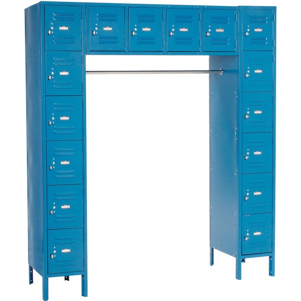 Ideal for use in employee locker rooms and more, 16 box lockers are arranged around a 1 diameter central coat rod. These lockers feature 16 gauge steel doors, 5-knuckle security hinge and welded, reinforced frame-and-door assemblies for maximum security. These lockers feature a padlockable friction latch and hasp closure. Louvers promote ventilation. Legs add 6 to height. Durable, attractive powder coat finish. Lockers feature finished sides; no need for decorative end panels. Lockers must be anchored securely to floors. 1-wide and 3-wide lockers have four foot plates included. Foot plates bolt to outside locker leg supports and maybe anchored to the floor. Anchors sold separately. Includes blank number plates. Shipped partially assembled. Assembled lockers are not returnable.
