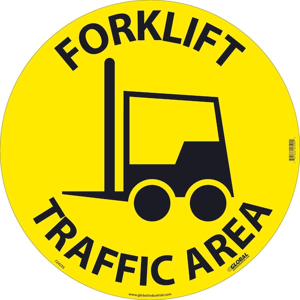 Effectively convey safety messages with safety floor signs. Highly visible, large 17 diameters are ideal for plants, factories, and warehouses. Safety messages are sub-surface printed on heavy-duty non-skid 10 mil clear vinyl with permanent pressure sensitive adhesive. Text on Sign: FORKLIFT TRAFFIC AREA