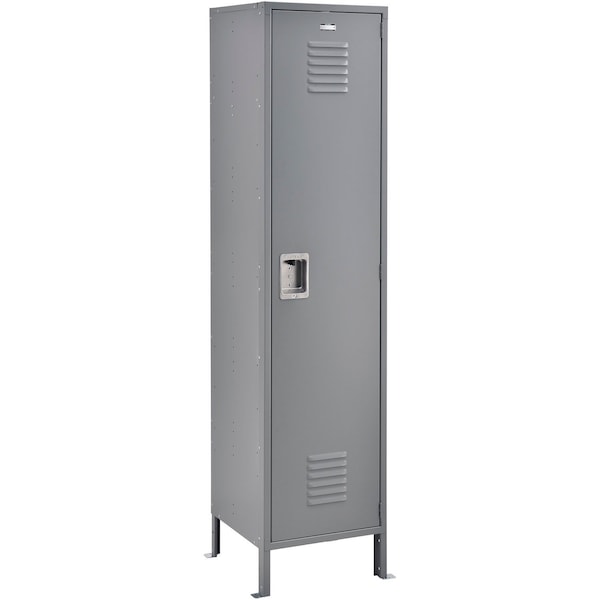 Door handle with fingertip lift latch is recessed into the door face to create a smooth catch-free surface, to discourage the padlock from being cut off and to provide a neat, clean look. The results are improved safety, security and appearance. These quality lockers feature 16 gauge steel doors, 5-knuckle security hinge and welded, reinforced frame-and-door assemblies. Extra wide louvers promote ventilation. Lockers must be anchored securely to floors. 1-wide and 3-wide lockers have four foot plates included. Foot plates bolt to outside locker leg supports and maybe anchored to the floor. Anchors sold separately. Legs add 6 to height. Includes blank number plates. Lockers have secure 3-point positive locking system, hat shelf, stainless steel door latch and double and single-prong coat hooks the 18 deep model also includes a coat rod.