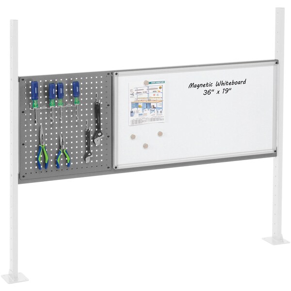 18in Pegboard & 36in Whiteboard Panel Kit, 60inW, Gray