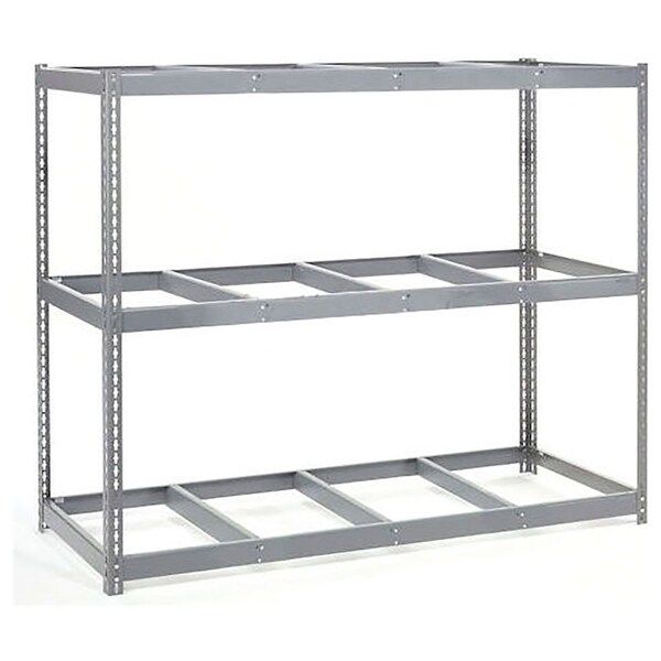 Easy set-up with snap-in components. No nuts, bolts, or clips required. Sturdy roll-formed steel framing provides maximum support. Front-to-back supports help prevent beams from rotating when fully loaded. Double Rivet button stud construction locks perimeter beams into corner post forming a structurally secure joint, eliminating back and side sway. Each starter unit includes rugged 2 1/4" x 1-1/2" 14 ga steel uprights that are punched on 1 1/2" centers and double riveted horizontal beams that adjust vertically on 1 1/2" increments. Chip resistant Gray baked enamel finish. Order decking separately.