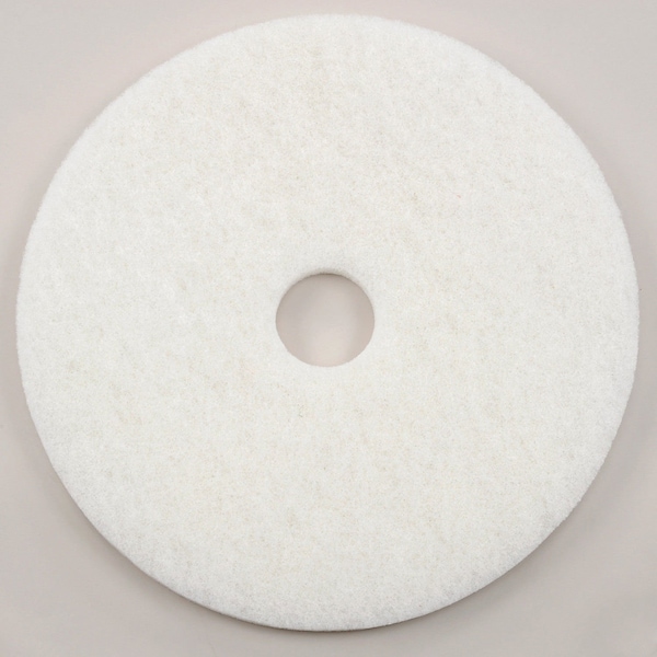 - Pad is made using 100% recycled polyester fiber with 80% post consumer waste. Utilizes water-based latex resins in binding process to eliminate hazardous resins. White polishing pad is for use with machines up to 1,000 RPM. Extra fine pad is ideal for polishing clean, dry floors. Use dry or with a fine water mist to produce a high gloss, wet look to newly finished floors. Sold 5 per case.