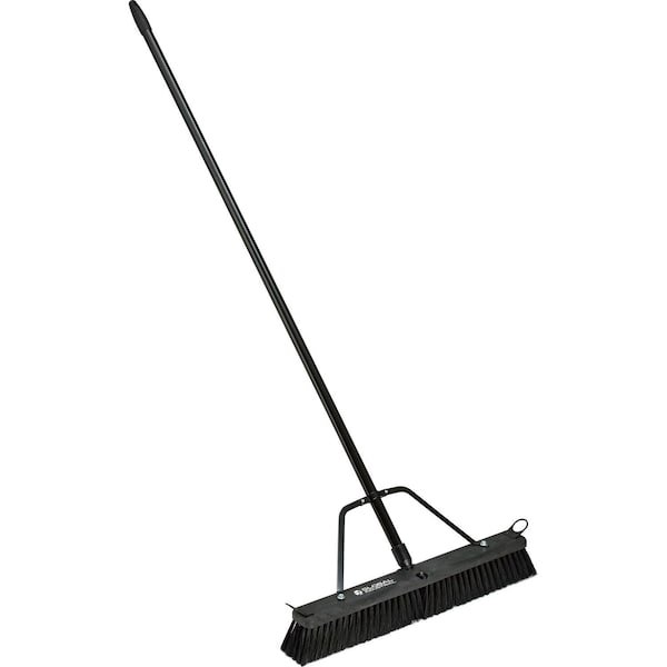 24in Push Broom W/ Plastic Block & Steel Handle, Fine Sweep