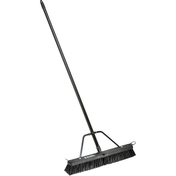 24in Push Broom W/ Plastic Block & Steel Handle, Rough Sweep