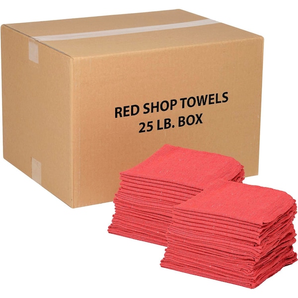 25 Lb. Box 100% Cotton Shop Towels, Red
