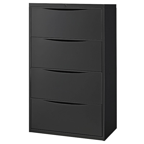 30W Premium Lateral File Cabinet, 4 Drawer, Black