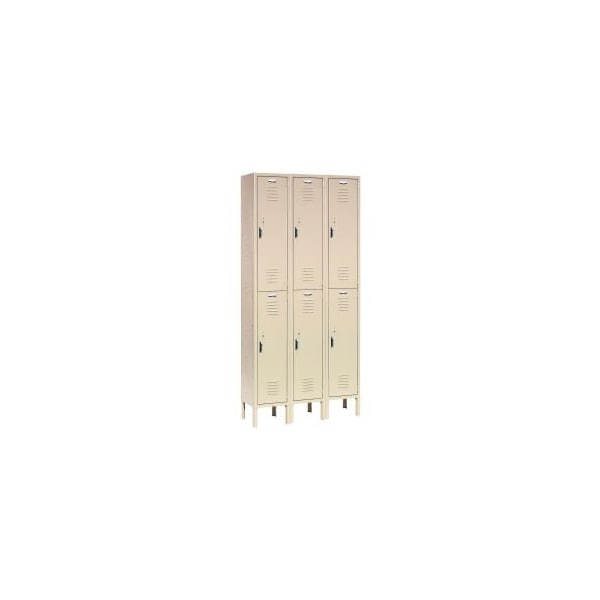 Used for use in schools and gym locker rooms. These premium metal storage lockers feature 16 gauge steel doors, 5-knuckle security hinges and welded, reinforced frame-and-door assemblies for maximum security. School lockers feature extra wide louvers to promote ventilation. Legs add 6 to height. Durable, attractive powder coat finish. Double Tier Lockers have secure 2-point positive locking system, chrome door latch lock sold separately and double and single-prong coat hooks. Optional Anchor Kits sold separately.