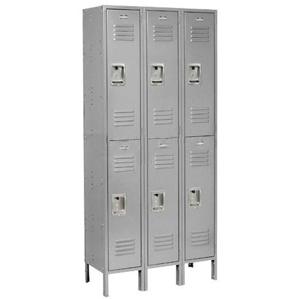 Catch-free recessed handle offer improved safety, security and appearance. Door handle with fingertip lift latch is recessed into the door face to create a smooth catch-free surface, to discourage the padlock from being cut off and to provide a neat, clean look. The results are improved safety, security and appearance. These quality lockers feature 16 gauge steel doors, 5-knuckle security hinge and welded, reinforced frame-and-door assemblies. Extra wide louvers promote ventilation. Legs add 6 to height. Durable, attractive powder coat finish. Lockers feature finished sides; no need for decorative end panels. Lockers must be anchored securely to floors. 1-wide and 3-wide lockers have four foot plates included. Foot plates bolt to outside locker leg supports and maybe anchored to the floor. Anchors sold separately.