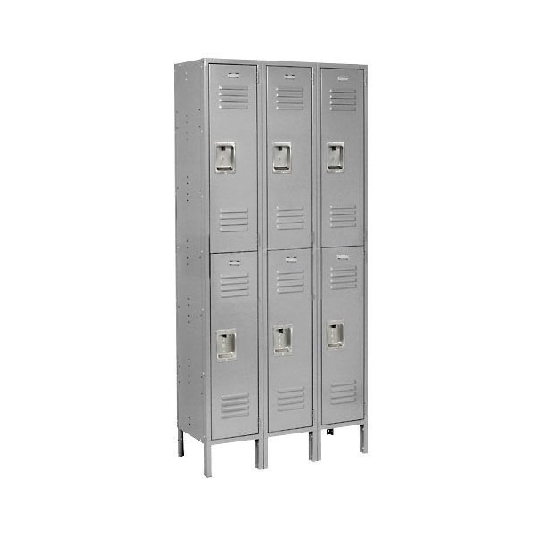 Door handle with fingertip lift latch is recessed into the door face to create a smooth catch-free surface, to discourage the padlock from being cut off and to provide a neat, clean look. The results are improved safety, security and appearanceThese quality lockers feature 16 gauge steel doors, 5-knuckle security hinge and welded, reinforced frame-and-door assemblies Extra wide louvers promote ventilation Lockers must be anchored securely to floors or walls 1-wide and 3-wide lockers have four foot plates included Foot plates bolt to outside locker leg supports and maybe anchored to the floor Optional Anchor Kits sold separately Legs add 6 to height Includes blank number plates Lockers have secure 2-point positive locking system, stainless steel door latch and double and single-prong coat hooks.