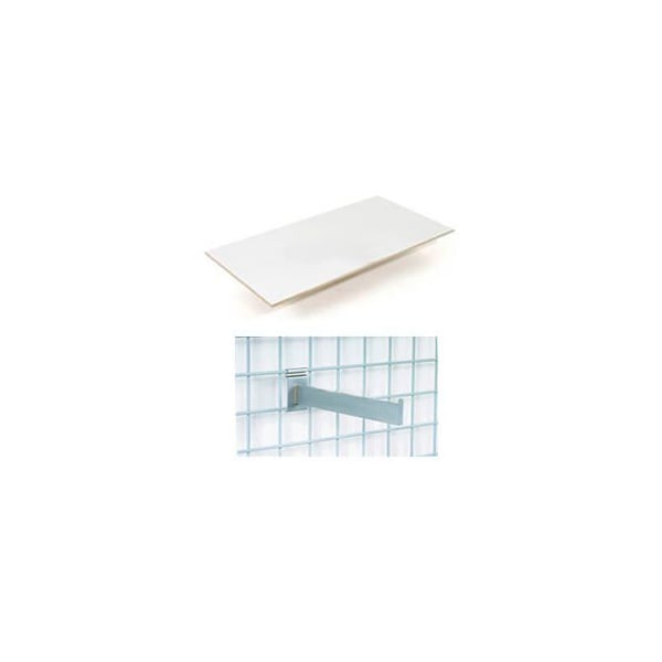 Includes three 1/2in thick white melamine wood shelves and six12inL hanging shelf brackets.