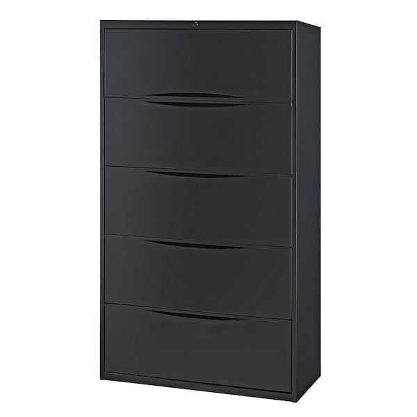 36W Premium Lateral File Cabinet, 5 Drawer, Black