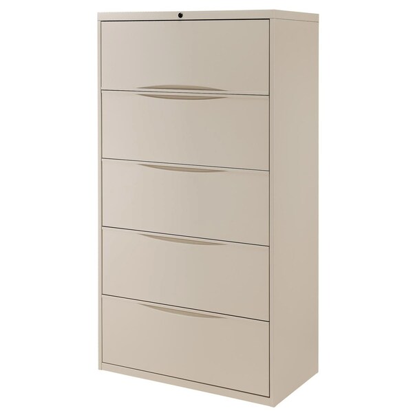 36W Premium Lateral File Cabinet, 5 Drawer, Putty