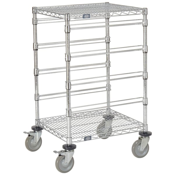 Bins sold separately. Bin carts feature adjustable slides for convenient bin access. Easily slide bins in and out for access and storage. Slides are height adjustable at 1 increments. Chrome wire carts offer an attractive finish thats suitable for retail environments. Withstands up to 1,200 lb. capacity. Top and bottom chrome wire shelves feature truss perimeter for extra strength and reinforcement while allowing light, air and sprinkler penetration. Open wire design helps reduce dust accumulation. Moves easily on four 5 polyurethane swivel casters 2 with brakes. Easy assembly.