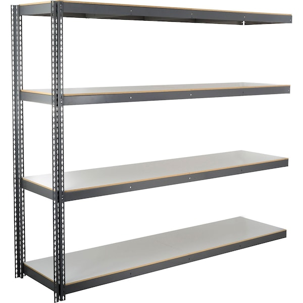 4 Shelf, Standard Duty Boltless Shelving Add On, 96"Wx36"Dx84"H, Laminate Deck