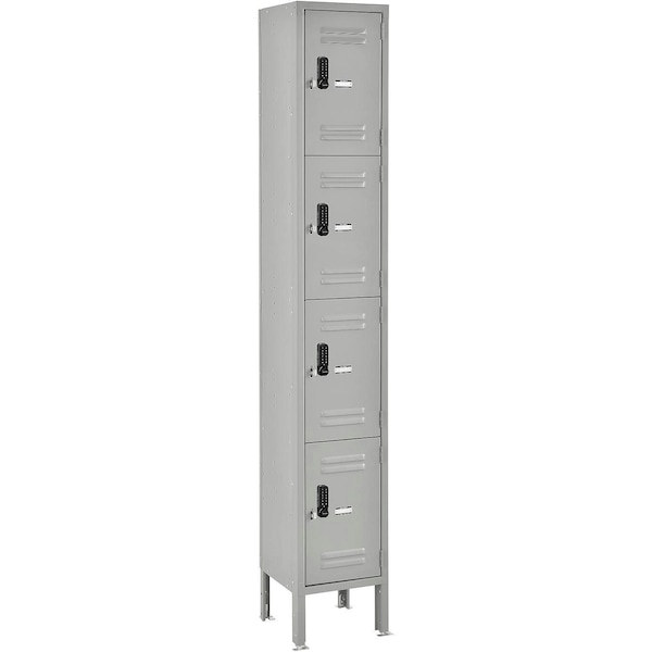 4-Tier 4 Door Digital Locker, 12"Wx18"Dx78"H, Gray, Unassembled