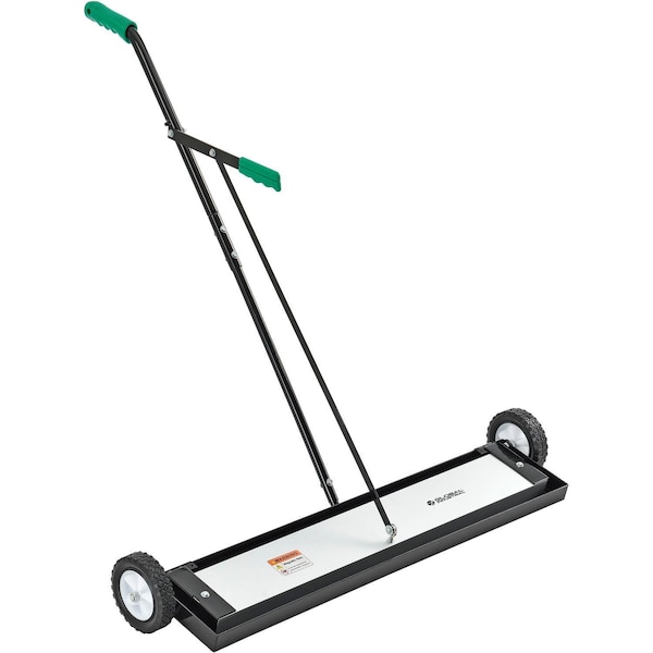 Heavy Duty Magnetic Sweeper easily picks ups nails, screws, paper clips and other unwanted metals off floors and surfaces for safety. Ideal for sweeping factory aisles, shop aisles, construction sites, manufacturing facilities, walkways, loading docks, parking lots and more. Quick load-release lever allows easy disposal of picked up metal objects. To unload, simply push the sweeper to desired dumping area and pull the lever. As the magnet rises, collected material is released.