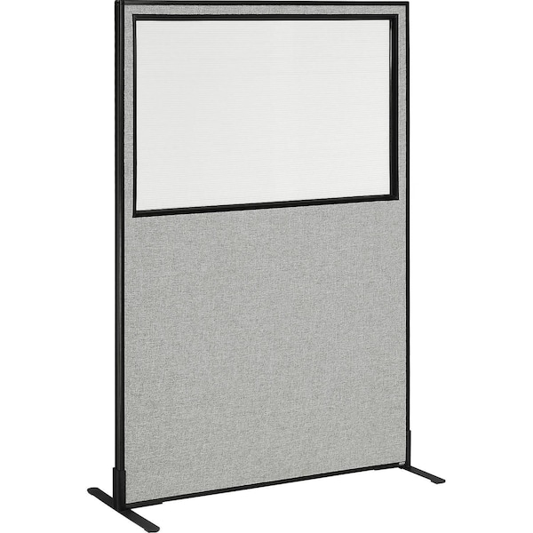 48-1/4W x 96H Freestanding Office Partition Panel with Partial Window, Gray