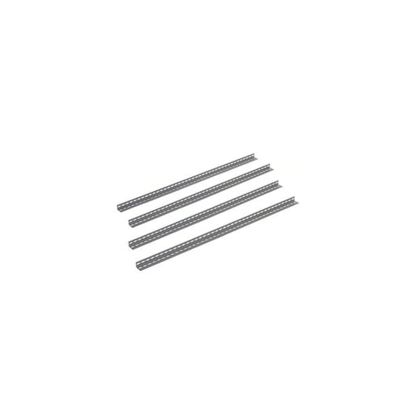 Punched on 1-1/2 centers for easy beam adjustment. 14 gauge steel construction. Keyhold openings allow single and double rivet boltless shelving.
