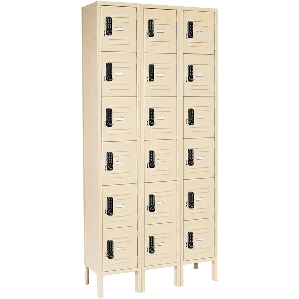 6-Tier 18 Door Digital Locker, 36"W x 12"D x 78"H, Tan, Assembled