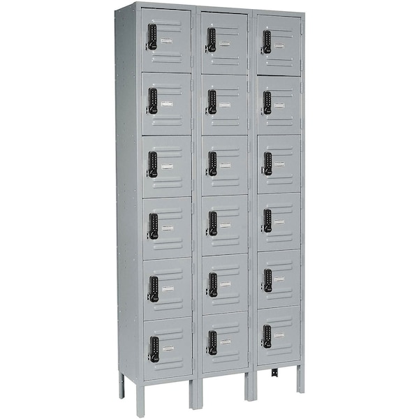 6-Tier 18 Door Digital Locker, 36"Wx12"Dx78"H, Gray, Unassembled