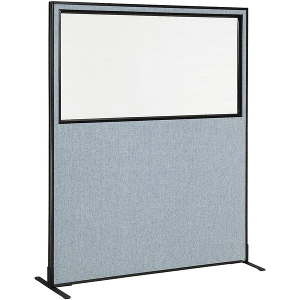 60-1/4W x 96H Freestanding Office Partition Panel with Partial Window, Blue