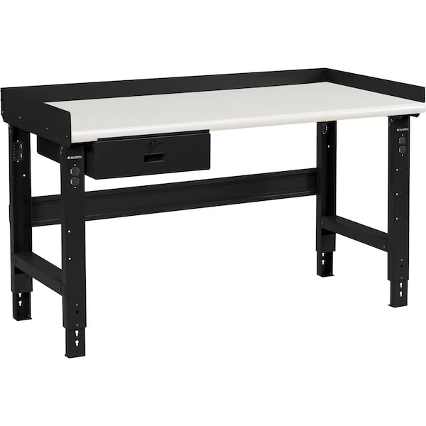60 x 30 Adj Height Workbench w/Drawer, Black- Plastic Laminate Safety Top