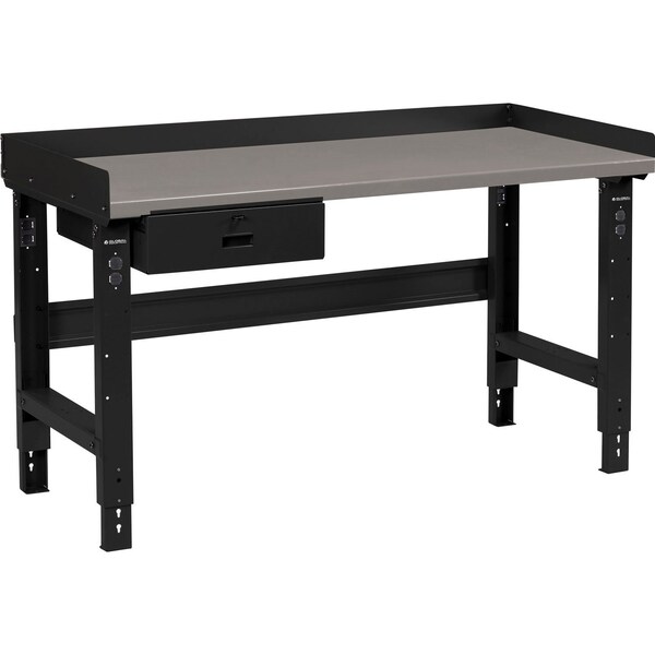 60 x 30 Adj Height Workbench w/Drawer, Black- Steel Square Edge Top