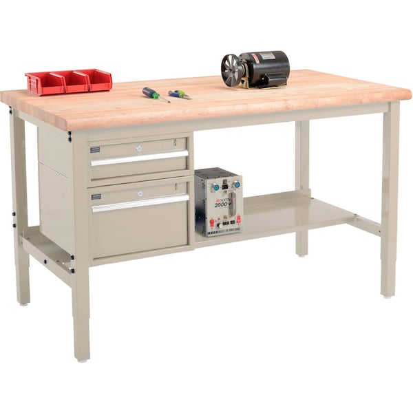 60inW x 30inD Production Workbench, Maple Safety Edge, Drawers & Shelf, Tan