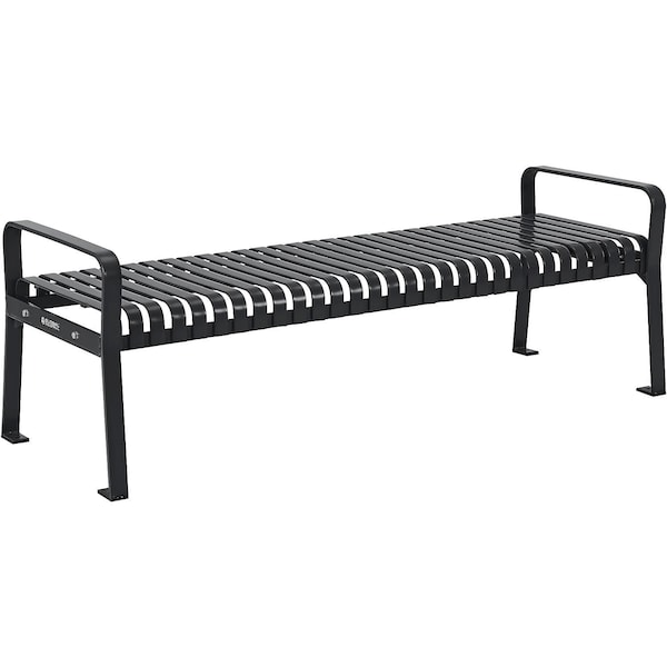 6ft Outdoor Bench, Backless, Vertical Steel Slat, Black