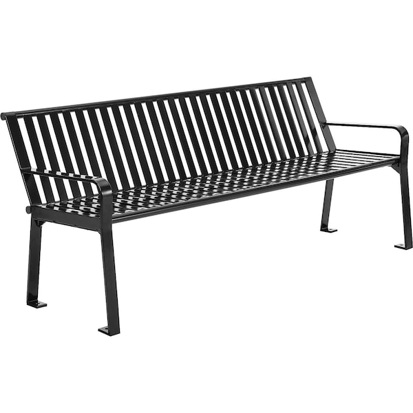 6ft Outdoor Bench with Back, Vertical Steel Slat, Black