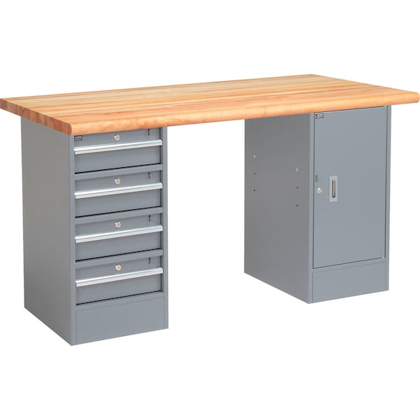 72 X 30 Pedestal Workbench, 4 Drawers & Cabinet, Maple Safety Edge, Gray