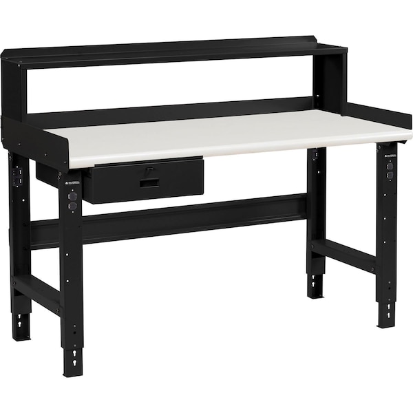 72 x 36 Adj Height Workbench w/DrawerandRiser, BK- Plastic Laminate Square Top