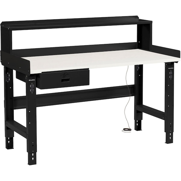 72 x 36 Adj Height Workbench w/DrawerandRiser, Black- ESD Square Edge Top