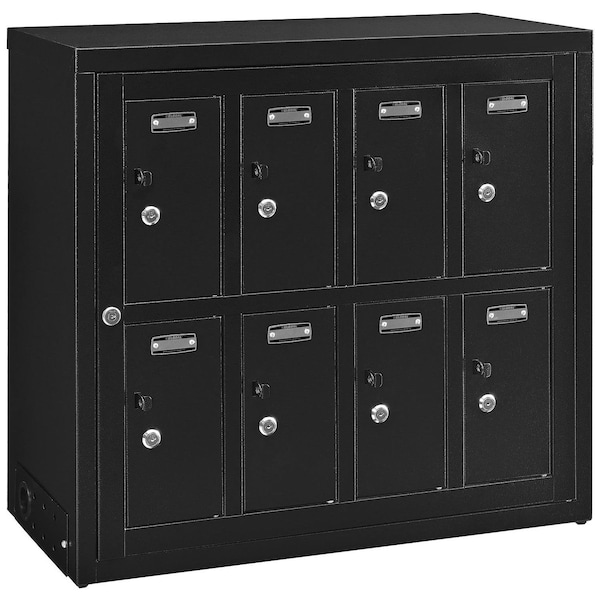 Cell phone lockers are ideal for military facilities, law enforcement, government contractors, fitness clubs, swimming pools, health care and schools to securely store cell phones, tablets, wallets, sun glasses, keys and other personal items. Cell Phone Lockers are made of 21 gauge steel doors and 20 gauge body with black powder coat finish for long lasting durability. Inside each of the compartment has a USB port for charging tablets, smart phones and other electronics by using user's own charging cable. The USB port connects to a 110V outlet, each port's output is 2.0 amps Max. to charge away. Mounted to the wall for ease of use. Lockers equipped both padlockable hasp padlock sold separately and key lock provide high security. 8 sets of 2 keys per door; each door is keyed differently. Management has master key set to allow immediate access to all locker compartments as needed. Blank metal number plates, hardware and mounting brackets included. Ships fully assembled.