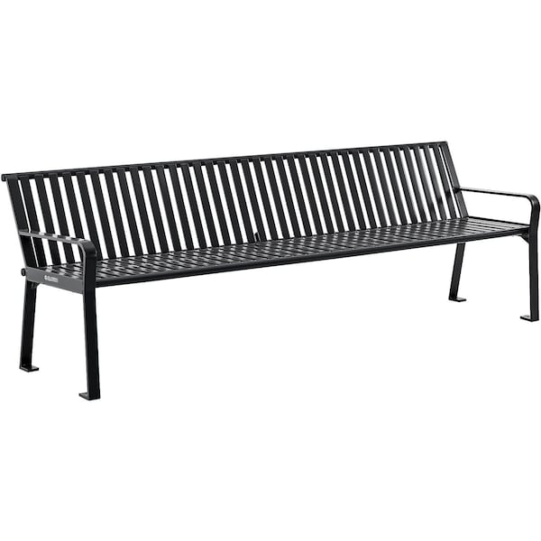 8ft Outdoor Bench with Back, Vertical Steel Slat, Black