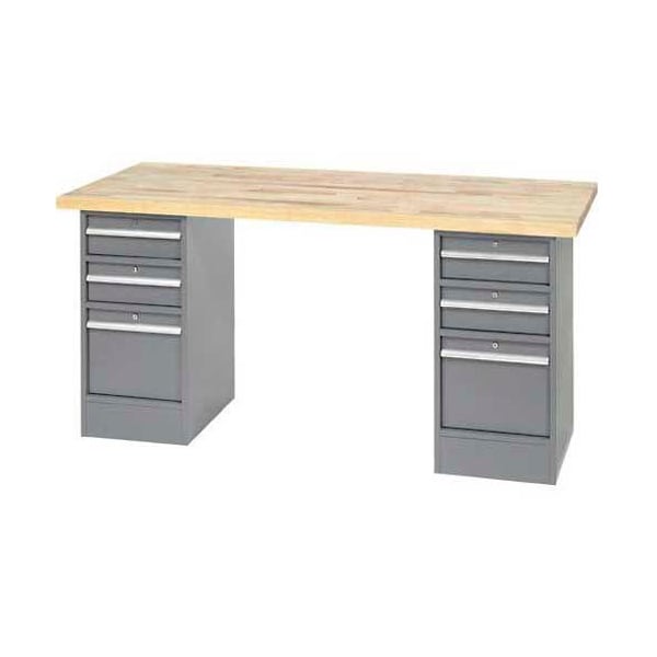 96 x 30 Pedestal Workbench, 6 Drawers, Maple Block Square Edge, Gray