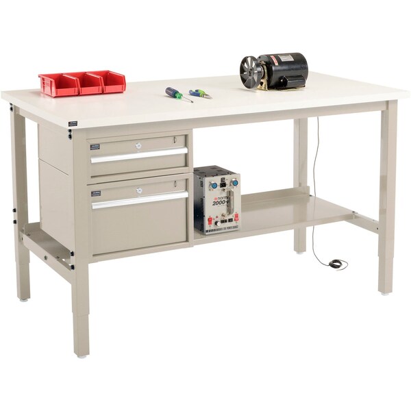 96inW x 36inD Production Workbench, ESD Square Edge, Drawers & Shelf, Tan