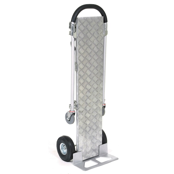 Durable, lightweight aluminum constructionNon-slid treadplate surfaceFlanged edge easily hools onto hand truckKeeps items from falling between the frames in either platform or hand truck mode