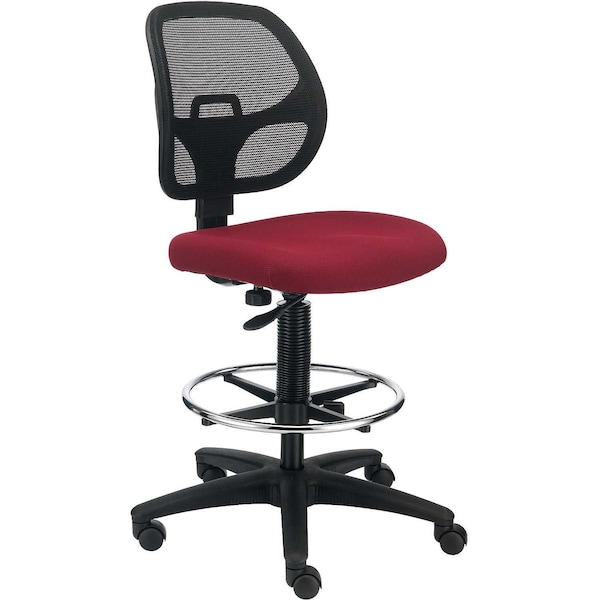 Armless Mesh Drafting Stool, Fabric, Red, Mid Back