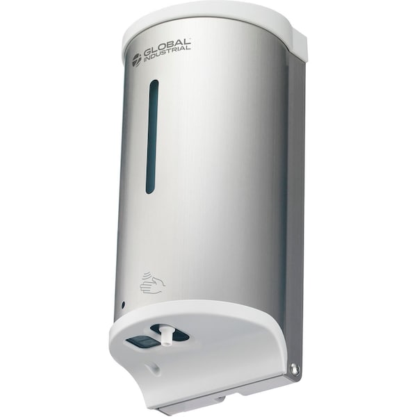 The Global Industrial; Automatic Hand Sanitizer/Soap Dispenser is contactless when distributing liquid or gel sanitizer onto hands after instant detection of the implanted auto sensor. Battery powered with minimal noise output ensures quiet operation making these units ideal for classrooms, offices, conference rooms and other common areas with rotational volumes of traffic. This compact design dispenser is tamper resistant with a security lock and key access. Refillable reservoir is included for quick refilling needs. Dispenser is electronic powered with low battery indicator for quick status monitoring. Powered by 4 AA batteries sold separately. Alcohol-resistant pump. Silver color finish. 800 ml capacity.